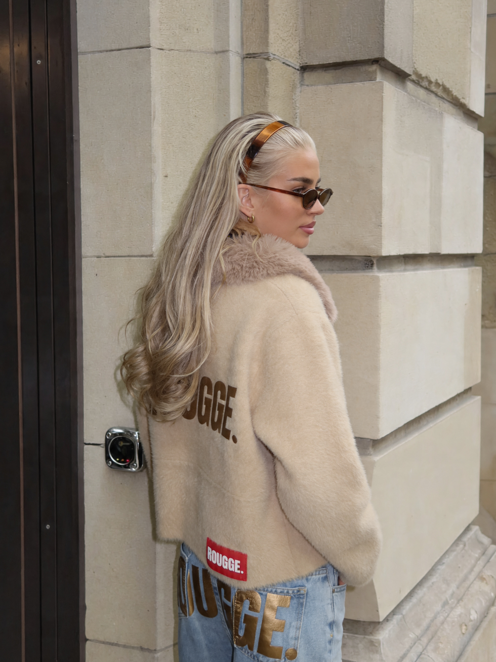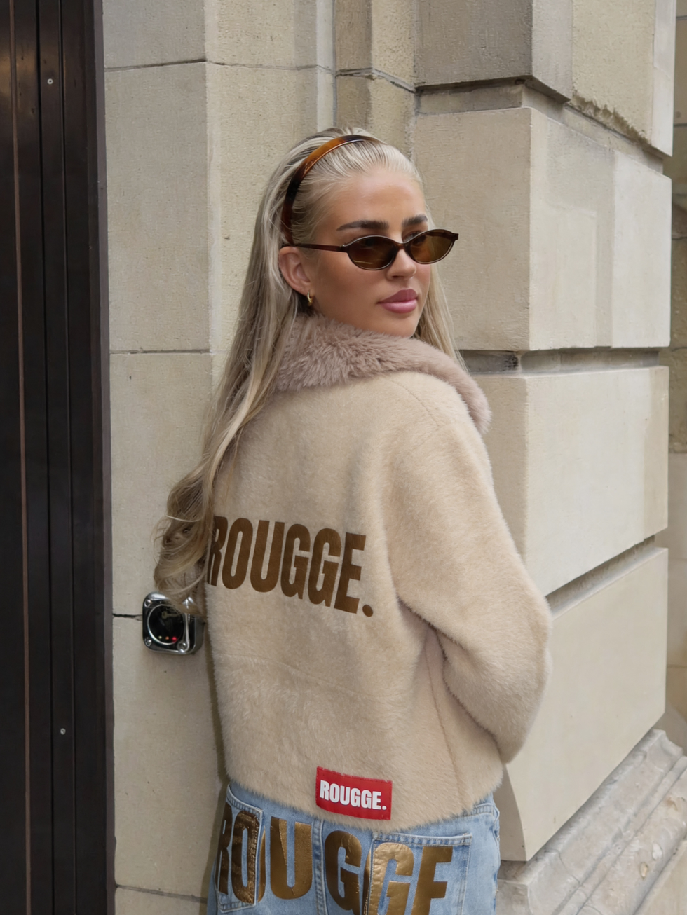En la espalda, el print ROUGGE en acabado tonal refuerza la identidad de la prenda de forma sutil.